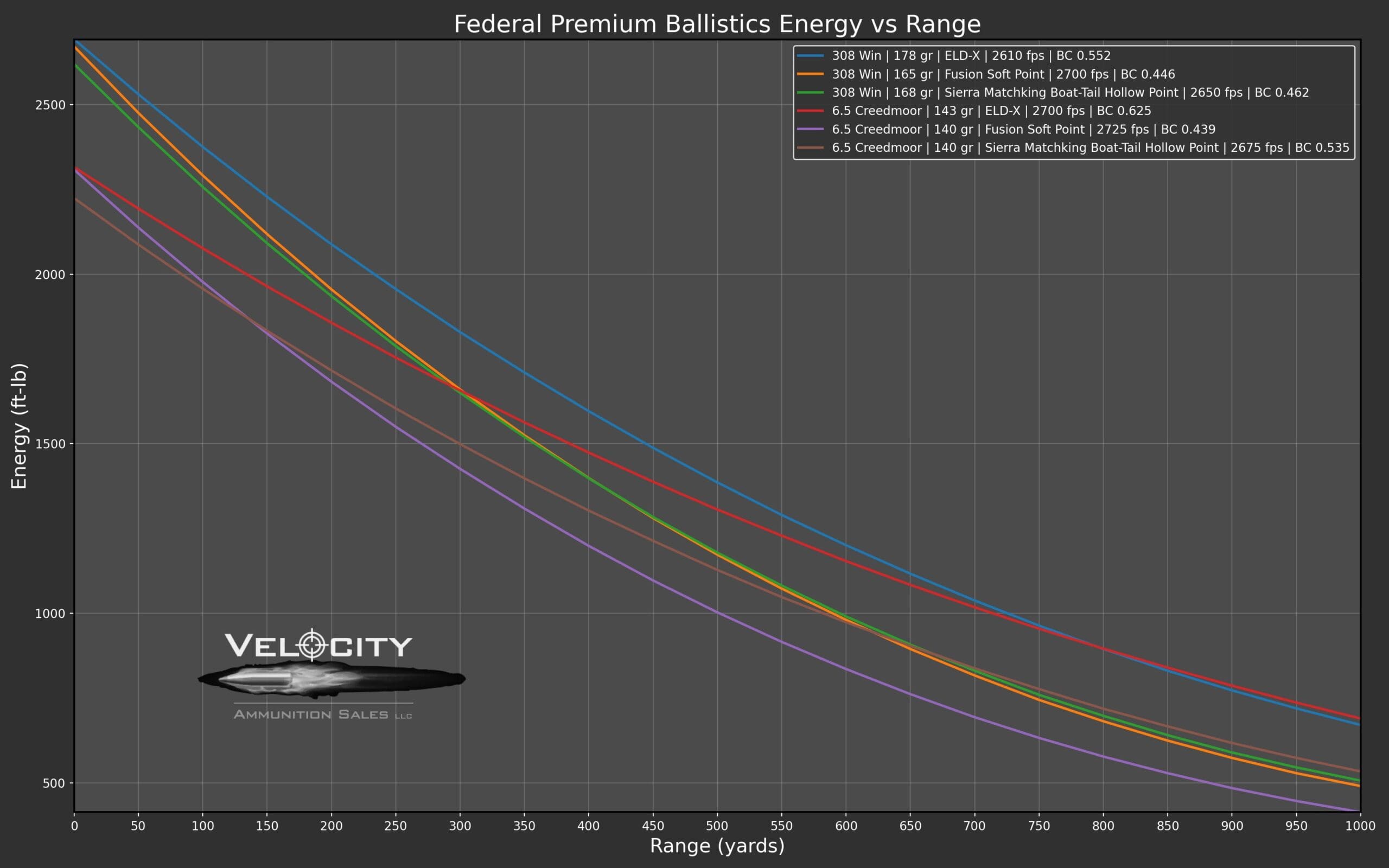 At typical ranges for hunting, say 400 yards and in, the additional energy produced by the .308 Winchester might give it an edge on big game like deer or elk. Even stretching out to 800 yards, you’ll see that the 308 Winchester consistently beats out the 6.5 Creedmoor in pure energy.